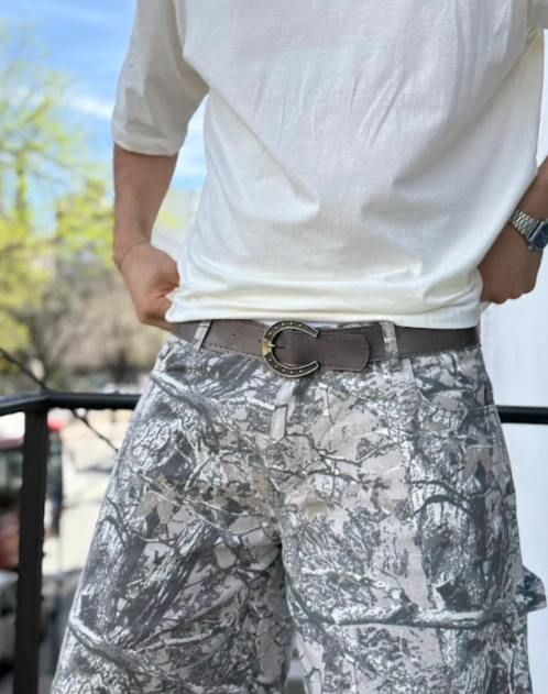 Cinto de eco cuero con hebilla en forma de herradura. 2 colores disponibles.