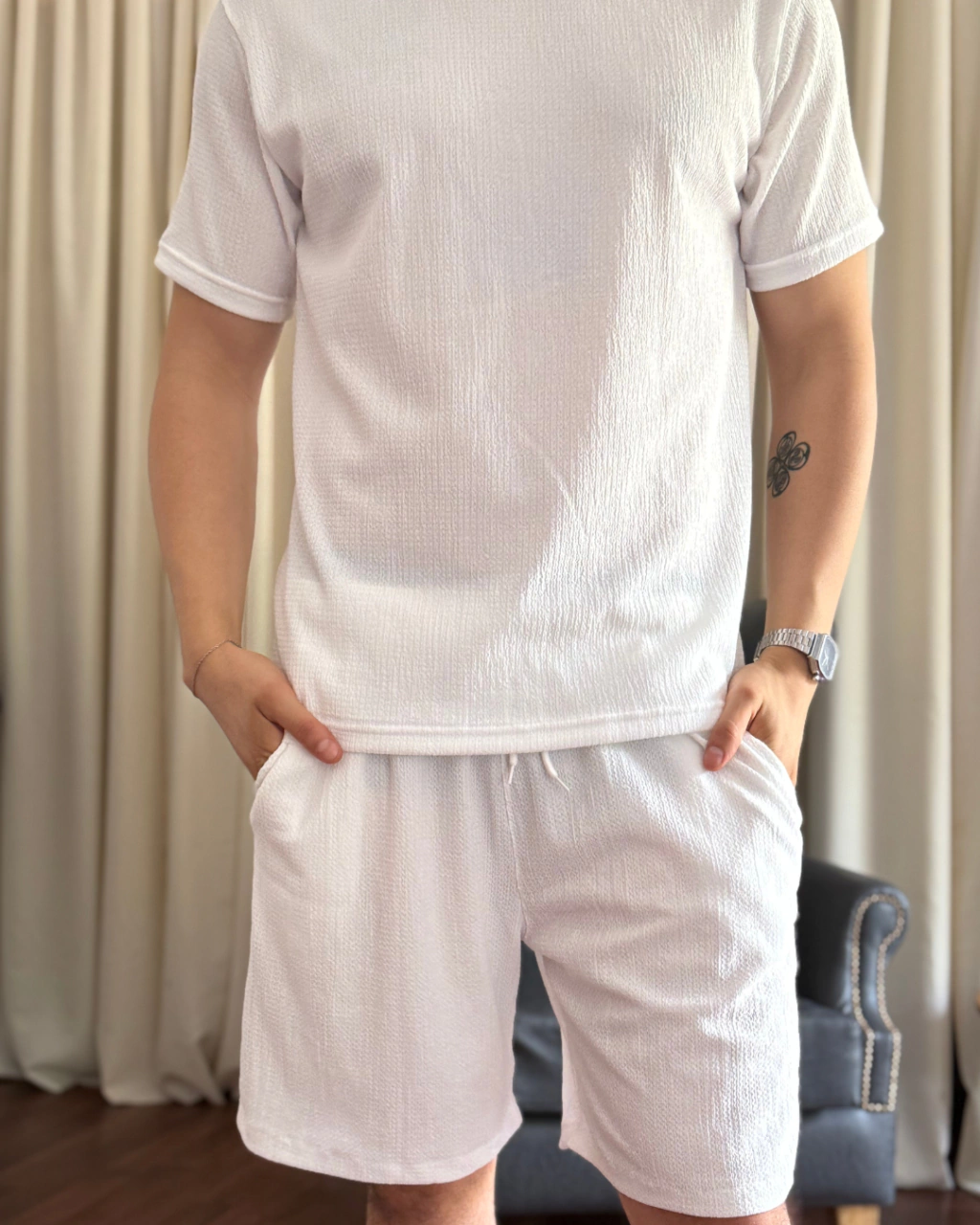 Conjunto de tela hawai remera + bermuda. 4 talles y 4 colores disponibles.