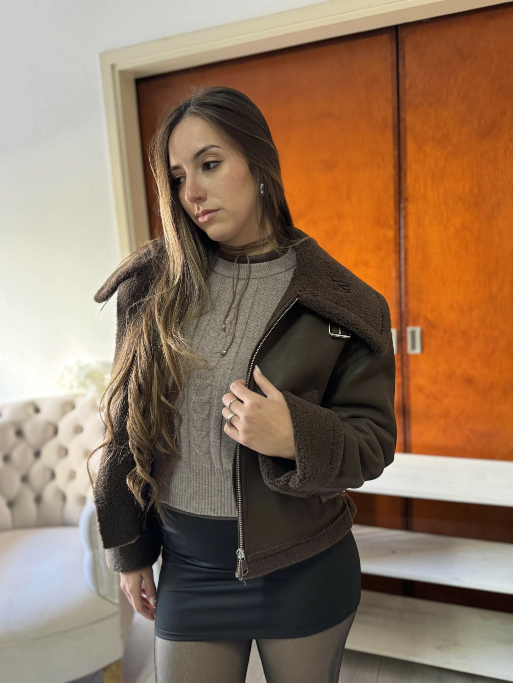 Gamular de ecocuero gamuzado con corderito en el interior. Disponible en dos colores.